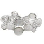 This stunning silver bracelet features beautifully polished moonstone stones, each set in a sleek silver bezel. The soft glow of the moonstones adds a touch of elegance, making it perfect for both casual and formal occasions. Wear it alone or stack it with other bracelets for a trendy layered look.