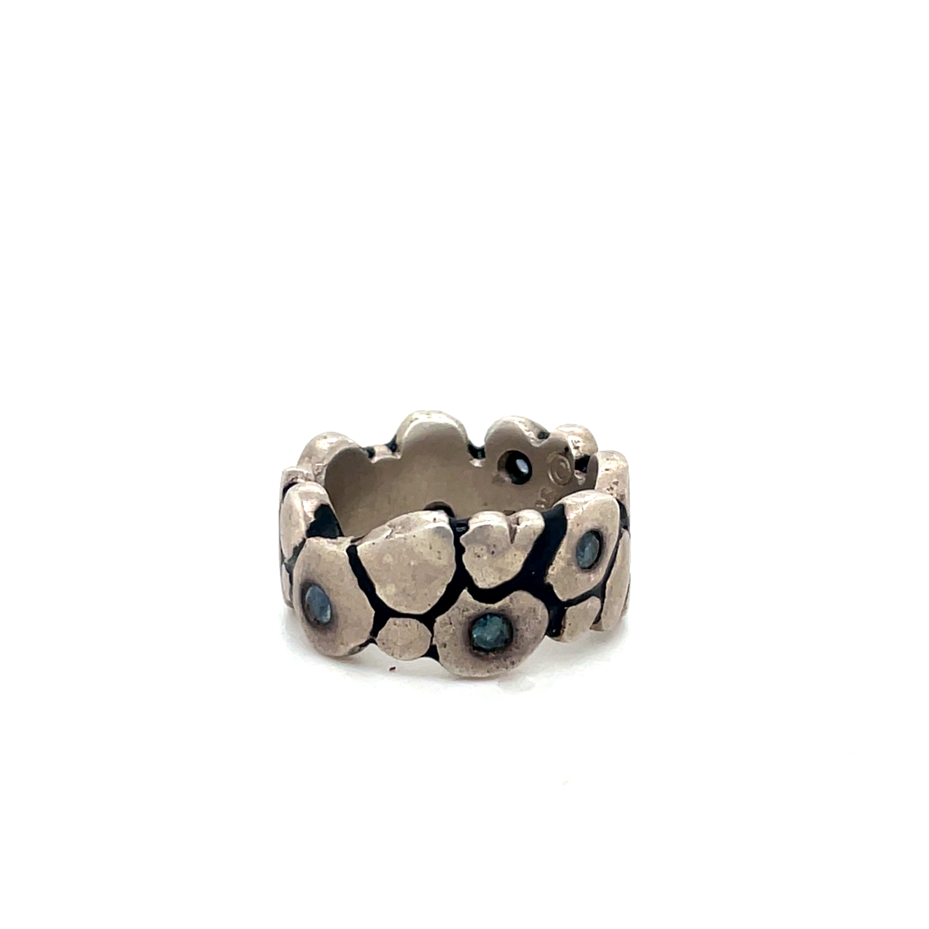 Two-Tone Boulder Mountain Ring w/ Diamonds & 5 Gold Hearts