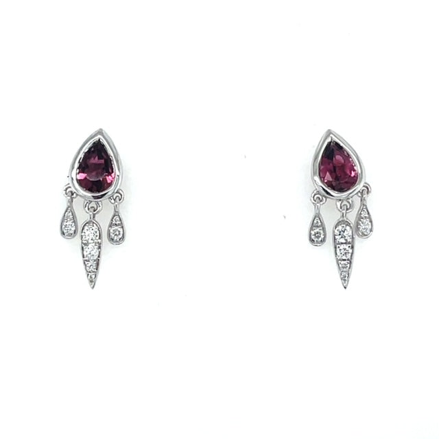 14KW Pink Tourmaline & Diamond Drip Earrings