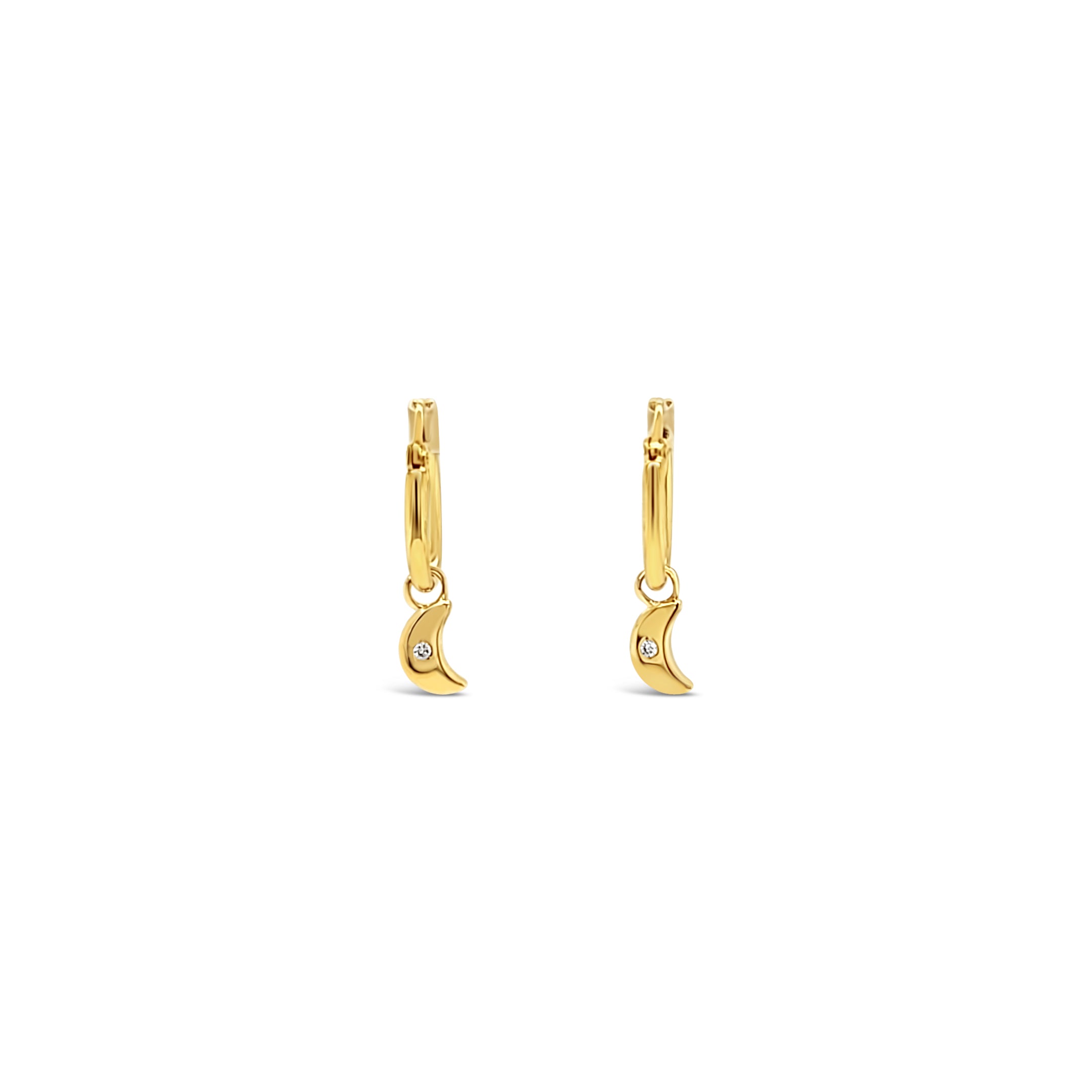 14KY Moon Dangle Earrings w/ Diamonds