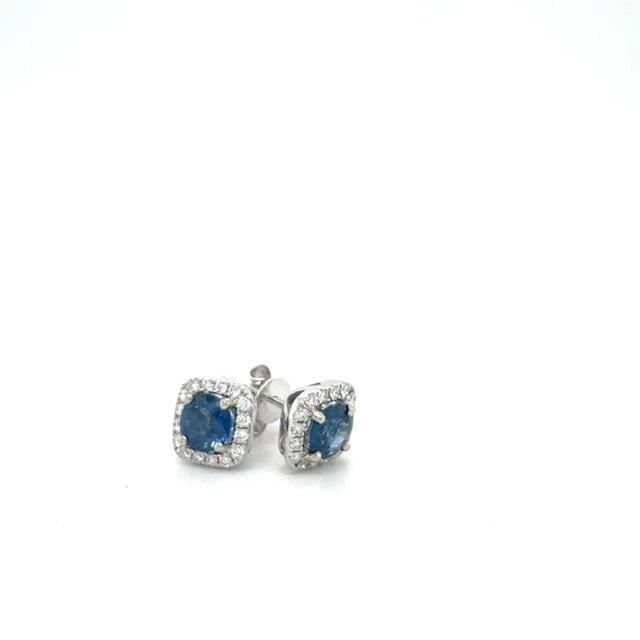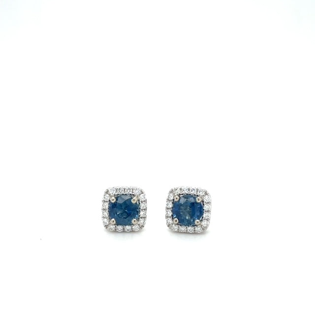 14KW Sapphire & Diamond Halo Square Stud Earrings