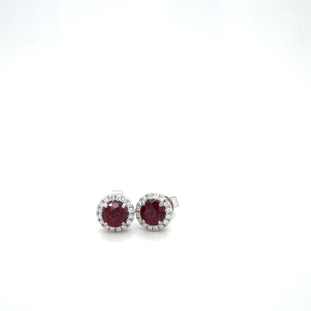 14KW Garnet & Diamond Halo Stud Earrings