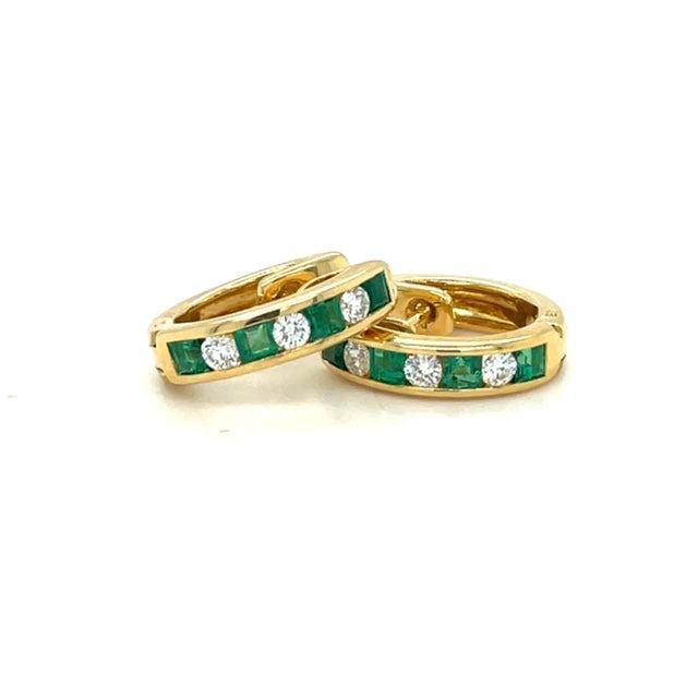 18KY Emerald & Diamond Huggies