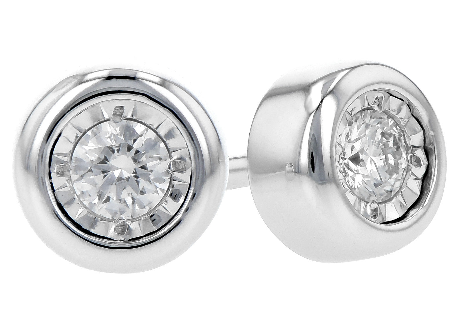 A simple staple piece for any wardrobe, these diamond stud earrings are bezel-set in 14k white gold.
