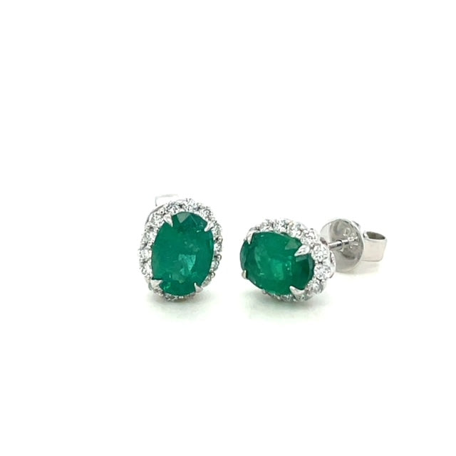 Oval Emerald & Diamond Halo Stud Earrings