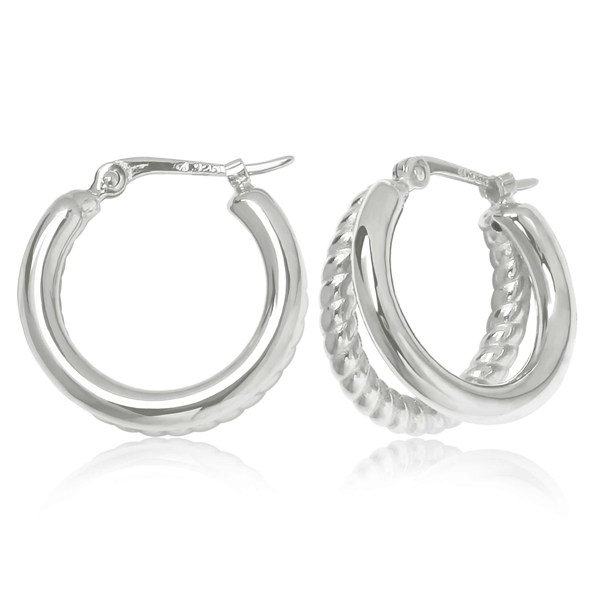 Modern elegance meets timeless design in these Silver Double Hoop Earrings. Featuring a sleek high-polish hoop paired with a twisted rope-textured hoop, this two-in-one design offers depth and dimension with a contemporary edge. Crafted in shining sterling silver, these earrings are lightweight, versatile, and perfect for elevating both everyday outfits and evening looks. Secure hinged closures ensure all-day comfort and effortless wear.
