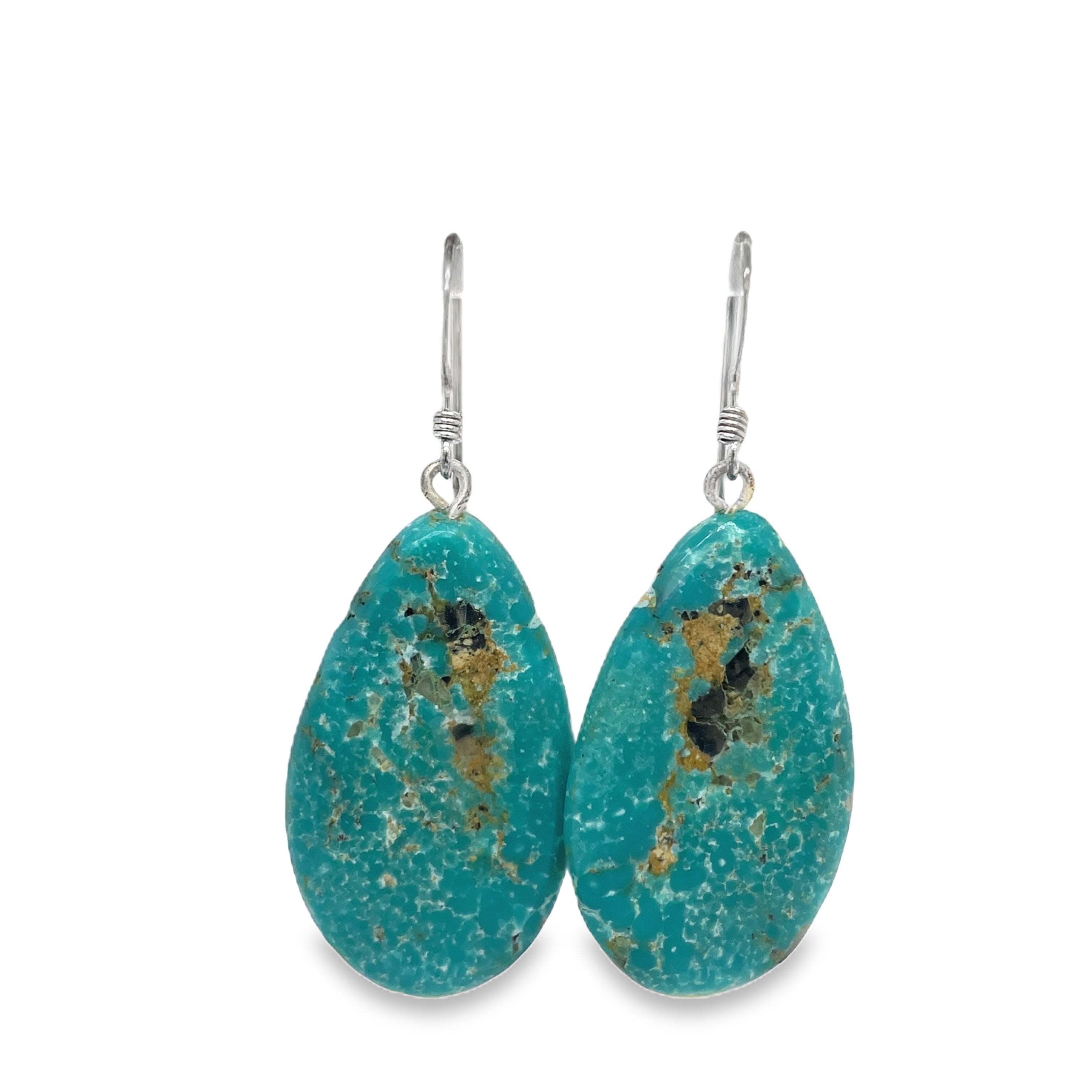 These stunning turquoise drop earrings are a perfect blend of elegance and natural beauty. The vibrant blue hue, accented with flecks of gold, adds a touch of sophistication to any outfit. Crafted with care, these earrings are designed to catch the light and draw attention, making them an ideal accessory for both casual and formal occasions.