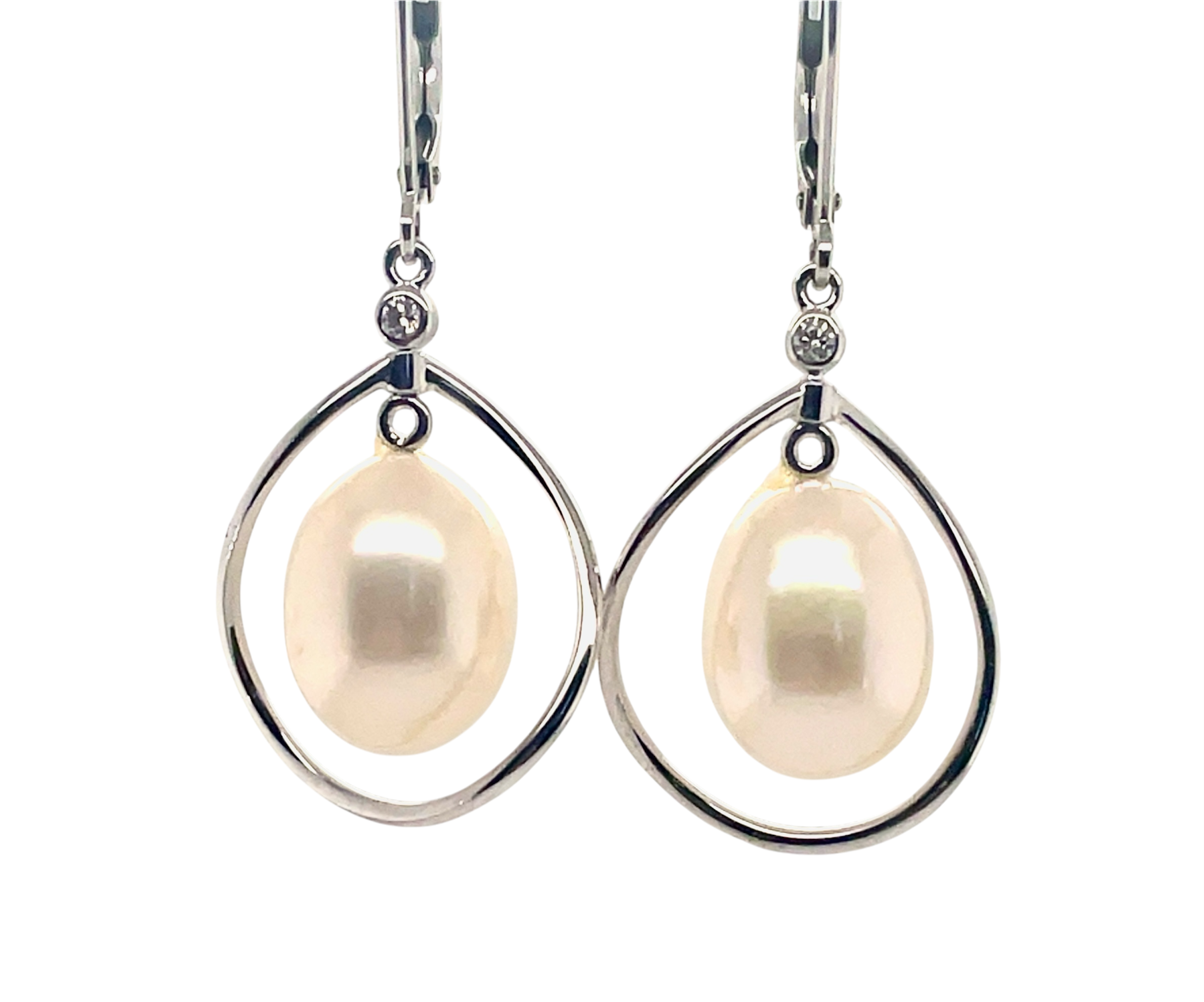 Pearl Dangle Earrings w/ 2 Diamonds