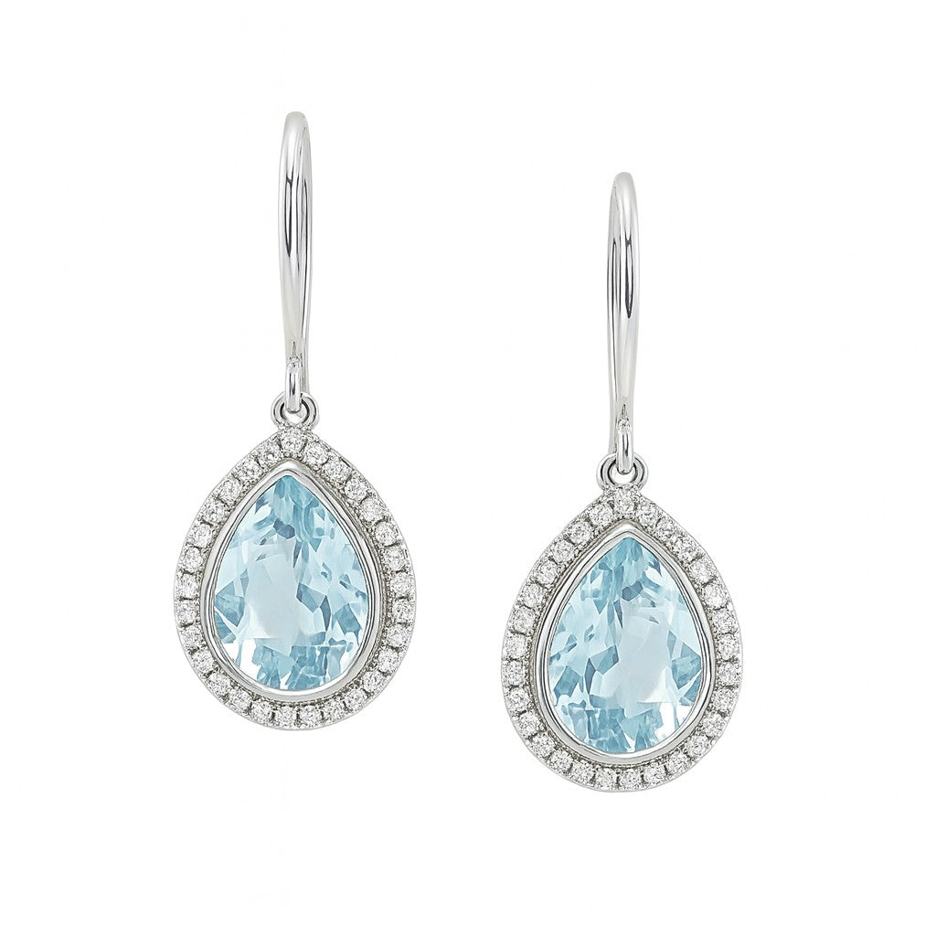 14K White Gold Blue Topaz & Diamond Teardrop Dangle Earrings