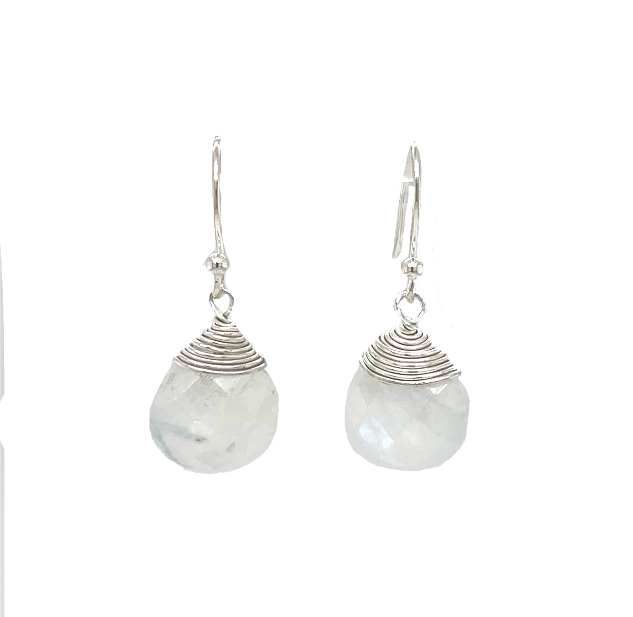 Wire Wrapped Rainbow Moonstone Earrings
