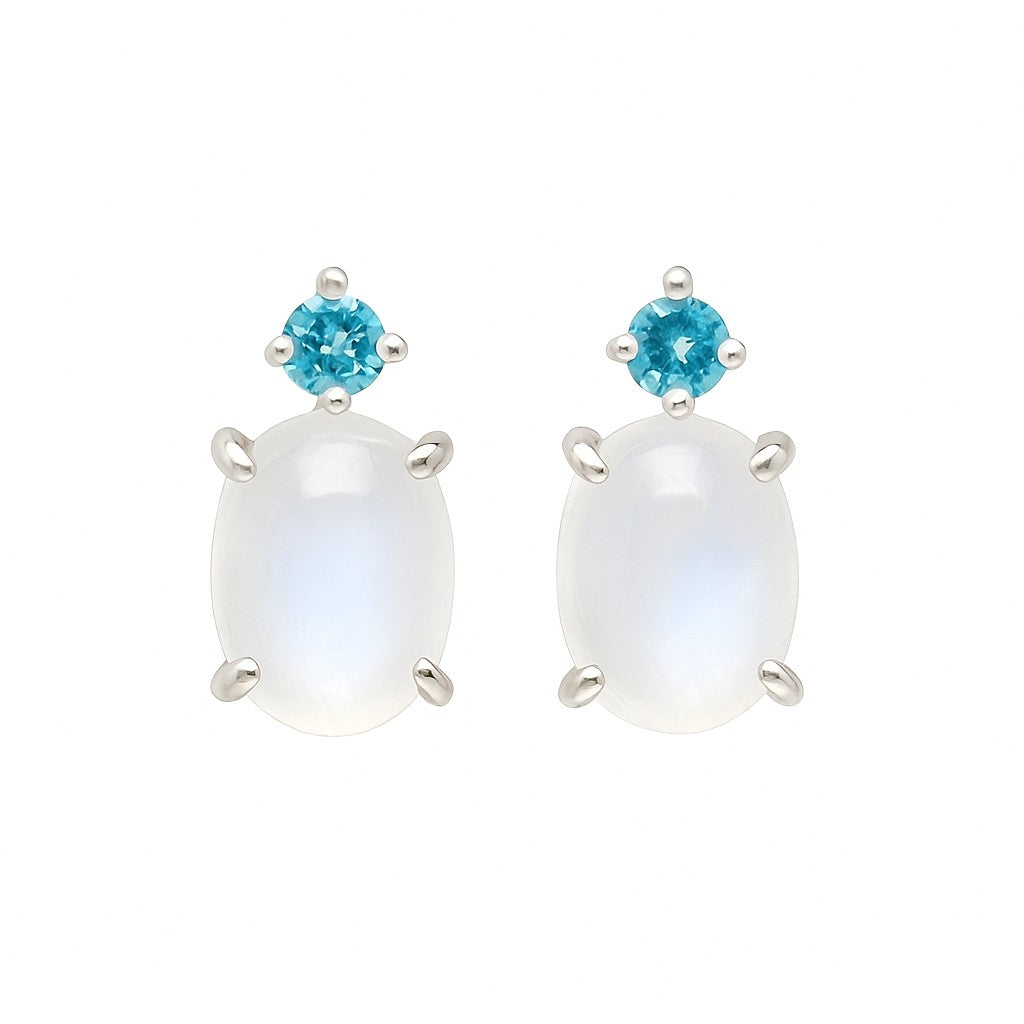 Rainbow Moonstone & Blue Topaz Sterling Silver Earrings