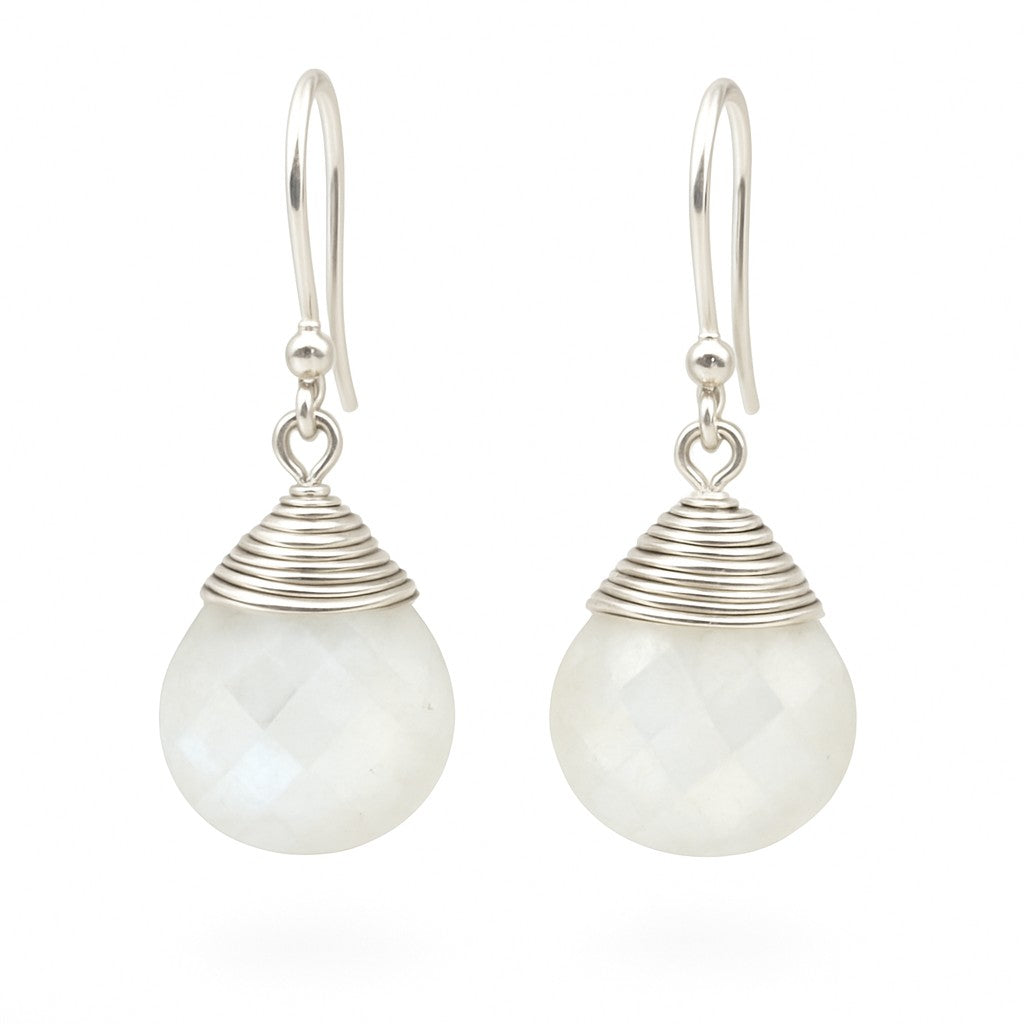 Wire Wrapped Rainbow Moonstone Earrings