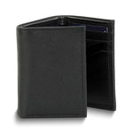 Black Cowhide Leather RFID Blocking 10-Slot Trifold Wallet