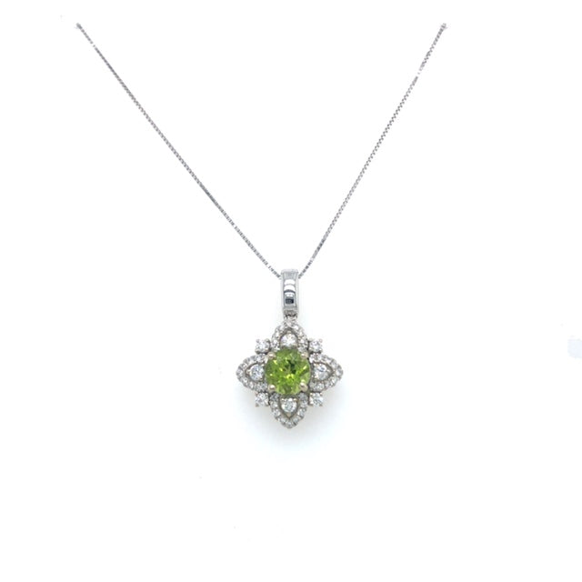 14KW Peridot & Diamond Pendant