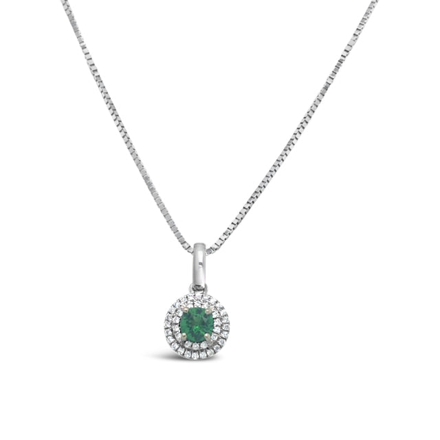 14KW Tsavorite Garnet Halo Pendant