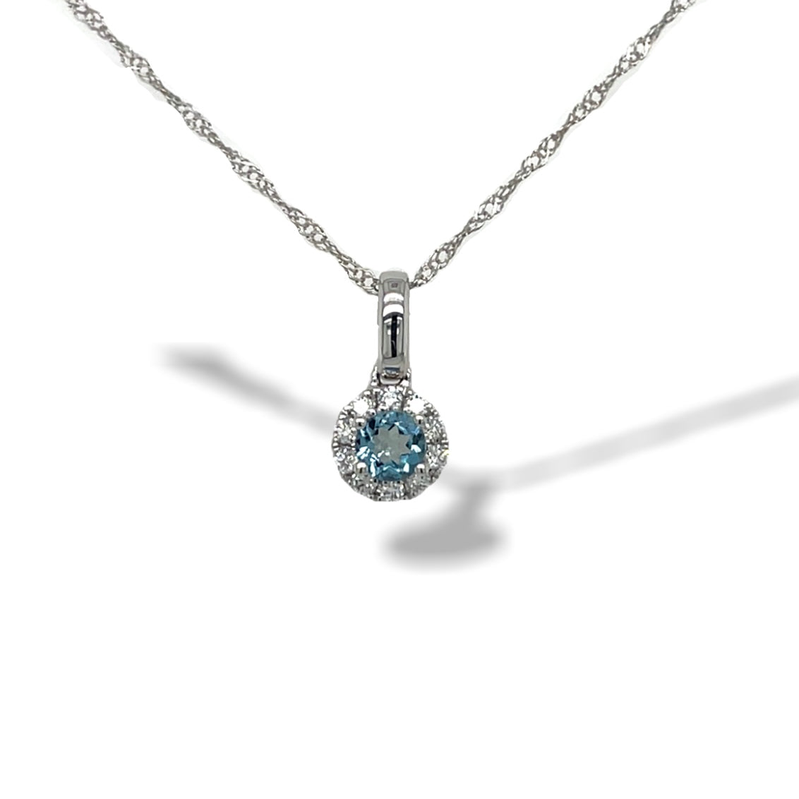 14K White Gold Aquamarine & Diamond Halo Pendant