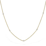 The perfect every-day diamond necklace. This beautiful diamond station necklace dons nine bezel-set diamonds on a 14k white gold chain.