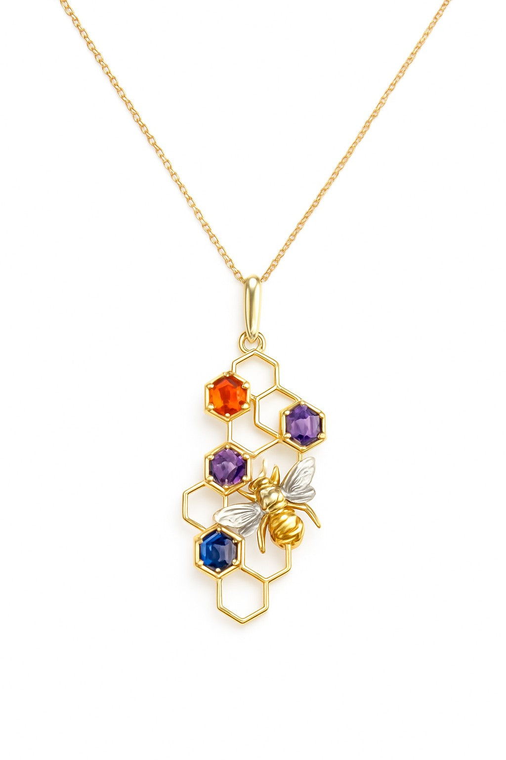 This pendant is a wearable piece of art—perfect for anyone who loves symbolic jewelry, nature motifs, or vibrant gemstones. The sapphires sparkle with life, while the bee adds a charming touch that feels both meaningful and unique. Whether worn daily or saved for special occasions, this honeycomb pendant is bound to spark conversations and admiration.