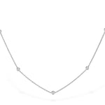 The perfect every-day diamond necklace. This beautiful diamond station necklace dons nine bezel-set diamonds on a 14k white gold chain.