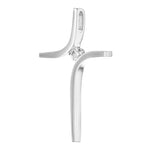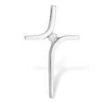 Two curved pieces of white gold intersect at a sparkling diamond to form a cross. This sleek, simple pendant is the perfect symbol of faith for someone with a keen appreciation for modern design.