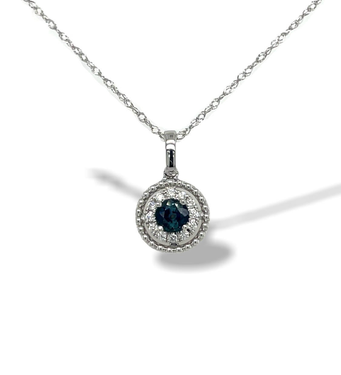 14K White Gold Sapphire & Diamond Halo Pendant