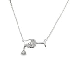 Elevate your style with this charming white gold necklace featuring a delicate wine glass design. Dazzling, round cut diamonds accentuate the whimsical charm of this pendant, creating a brilliant sparkle with every movement. A sophisticated addition to any jewelry collection, perfect for adding a touch of playful elegance.