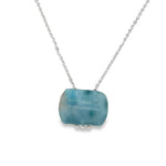 This stunning blue larimar pendant captures the essence of tranquility and elegance. The unique shape and vibrant color make it a standout piece, perfect for any occasion. Crafted with care, it hangs gracefully from a delicate chain, adding a touch of sophistication to your outfit.