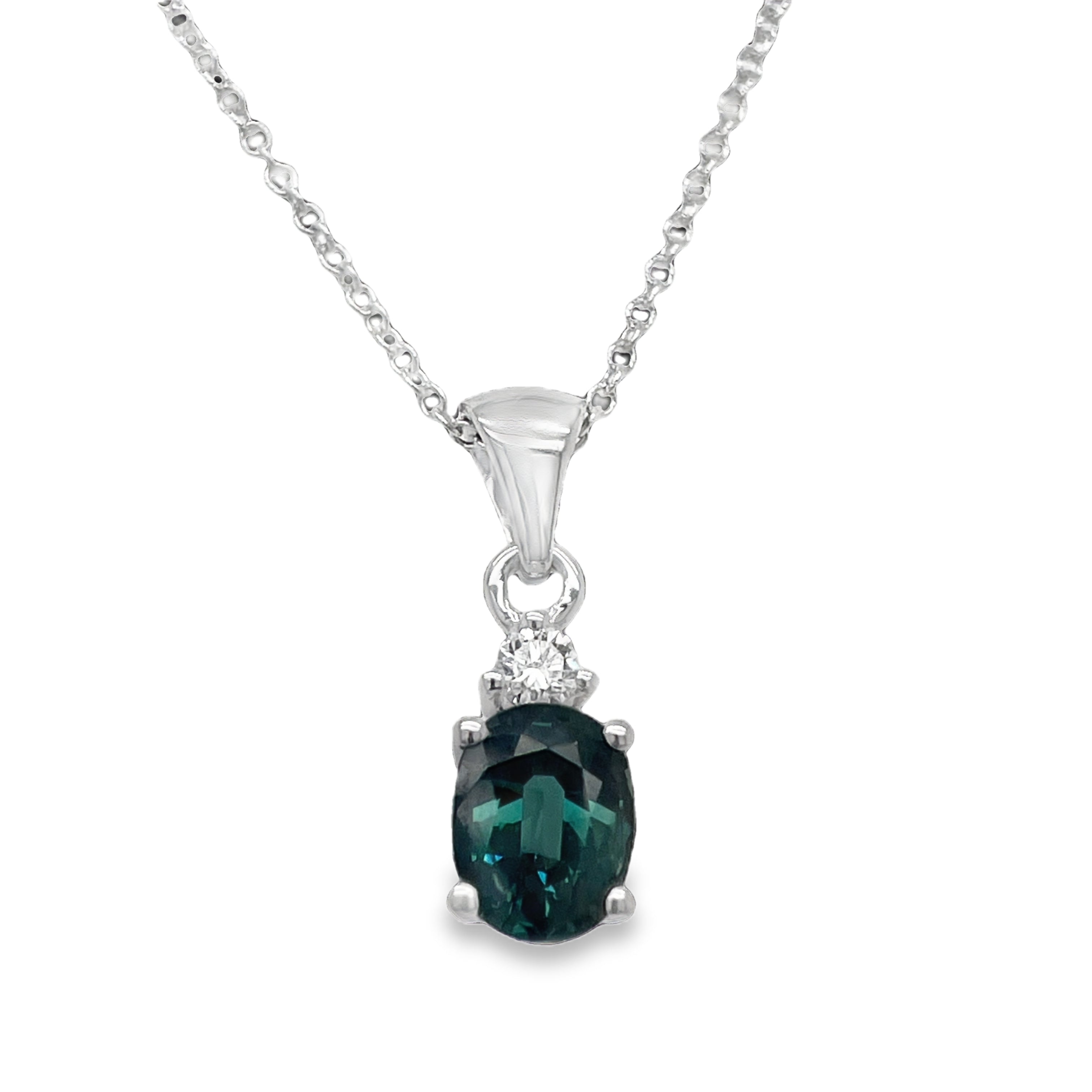 This stunning teal gemstone pendant is a perfect blend of elegance and sophistication. Crafted with a brilliant oval-cut stone, it captures light beautifully, making it an eye-catching accessory for any occasion. The delicate chain adds a touch of grace, ensuring that this piece stands out while complementing your style.