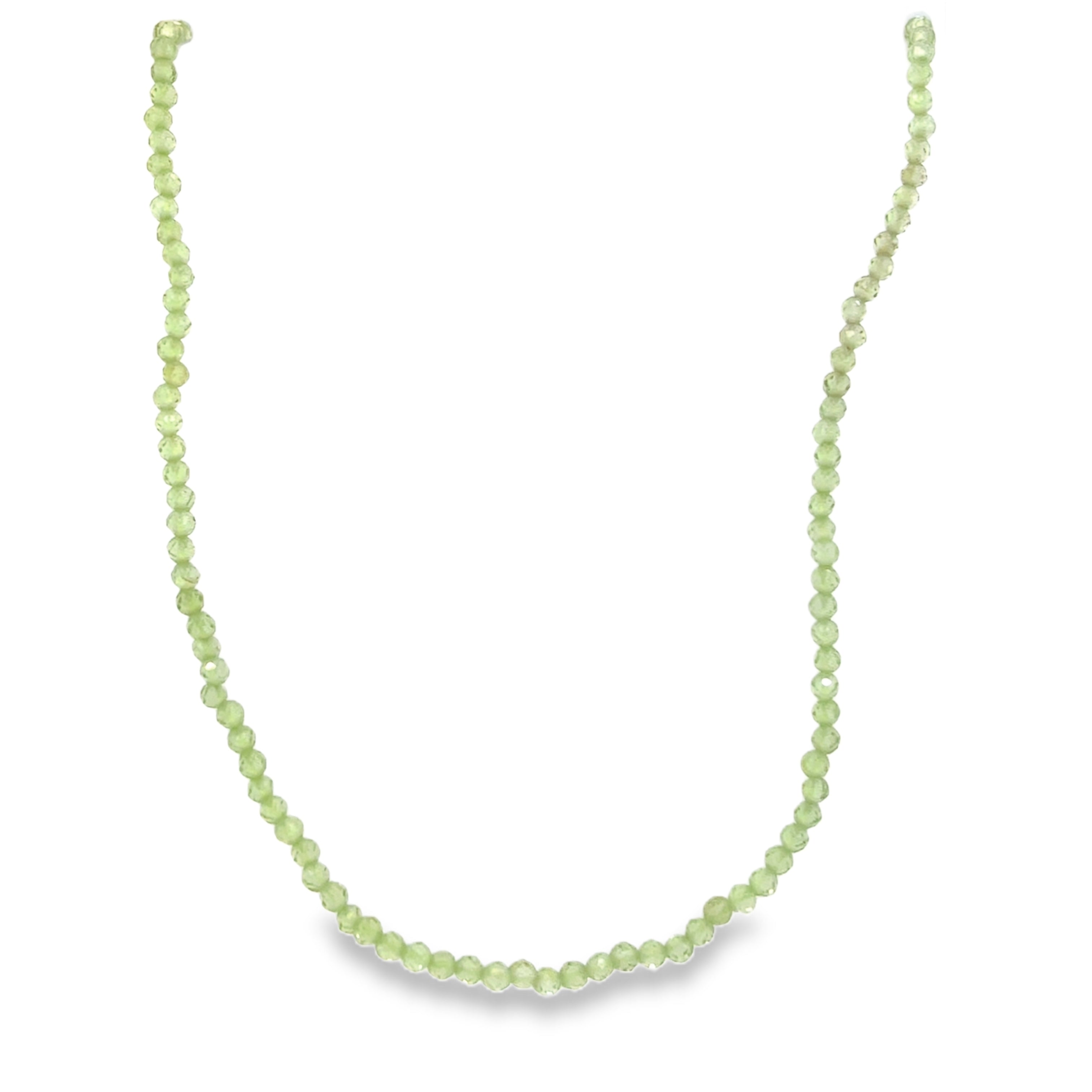 Fresh, uplifting, and full of natural sparkle — this faceted peridot necklace brings a soft, luminous green glow to any look. Each petite peridot bead is carefully cut to enhance its natural brilliance, catching the light with delicate shimmer. The gentle hue evokes budding leaves and spring sunlight, offering a bright, joyful burst of color that’s both elegant and effortless.