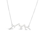 Perfect for any mountain lover, this open mountain silhouette necklace in brushed sterling silver is an ideal everyday piece.