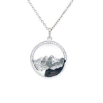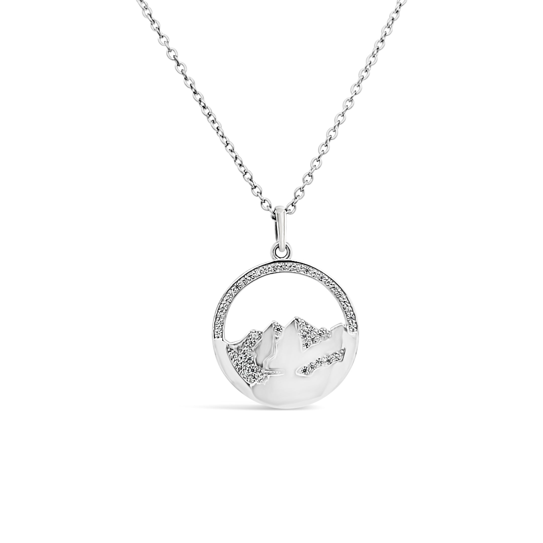 Take your love for the mountains everywhere with you! Delicate cubic zirconia crystals bring this glacier mountain pendant to life.