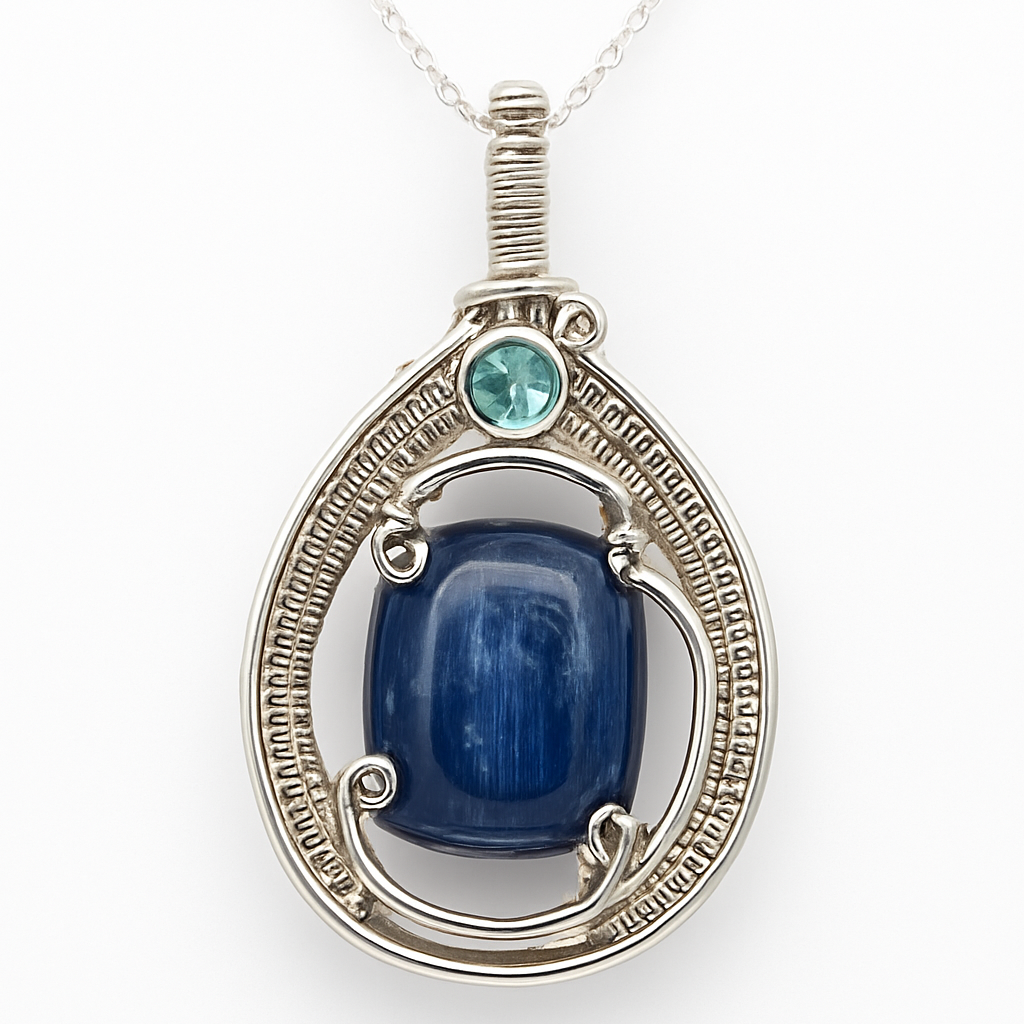 Sterling Silver Wire-Wrapped Kyanite & Aqua Pendant