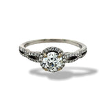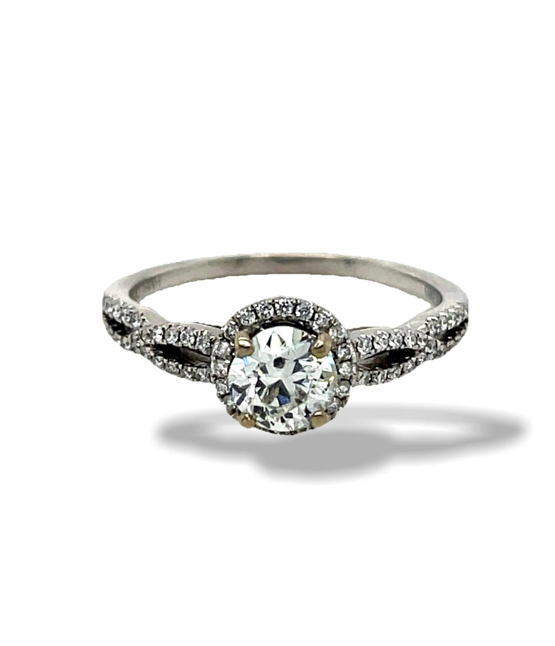 A beautiful diamond halo adorns this timeless ring. Channeling the essence of eternal love, this engagement ring is the perfect choice for a modern woman.