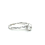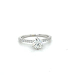 A beautiful round .82ct diamond sits among 20 accent diamonds on a white gold band in this classic style engagement setting.