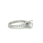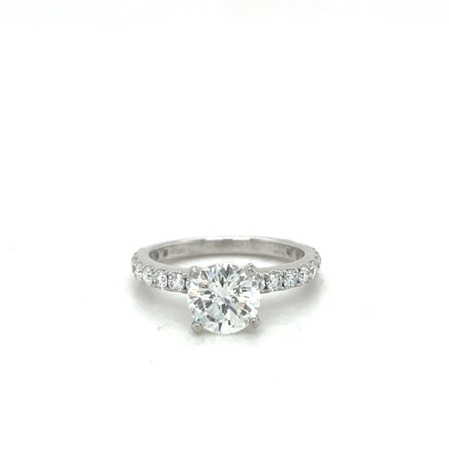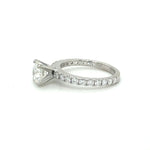 A stunning 1.41ct center diamond is enhanced by the shimmering 20 side diamonds in this beautiful classic style engagement ring in platinum.