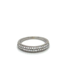 This stunning white gold band dazzles with three meticulously set rows of round brilliant-cut diamonds in a classic pavé setting. Each diamond is placed closely together, creating a seamless surface of sparkle that wraps elegantly around the band. The fine craftsmanship ensures a smooth, comfortable fit while maximizing brilliance from every angle. With its luxurious shimmer and timeless design, this ring is perfect as a wedding band, anniversary gift, or a statement piece for everyday elegance.
