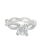 Discover the beauty of this elegant twisted white gold ring, featuring a stunning round-cut lab grown diamond at its center. The intricate design showcases sparkling accents that catch the light beautifully, making it a perfect accessory for any occasion. Whether you're dressing up for a special event or adding a touch of glamour to your everyday look, this ring is sure to turn heads.