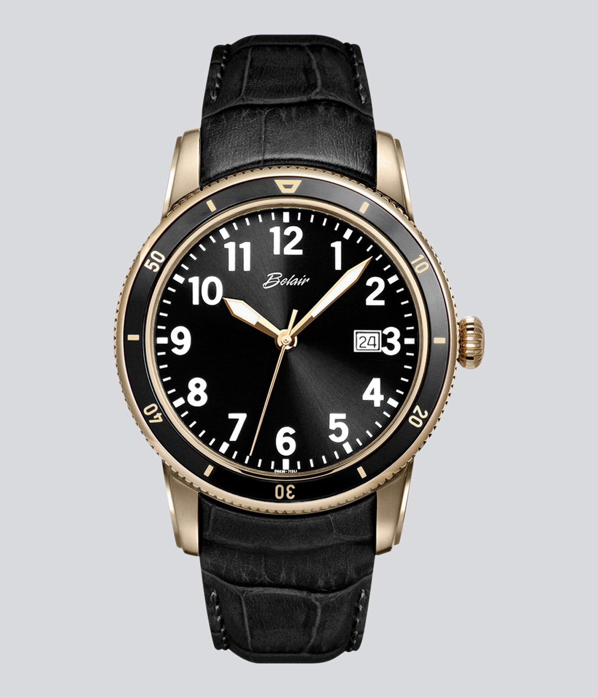 10 ATM, 10 year lithium battery, Stainless steel case, Genuine Leather Strap with Deployment buckle, One-directional rotating diver bezel, Screw down diver crown, Luminous dial and hands, Sapphire crystal, Case diameter: 44.3 mm