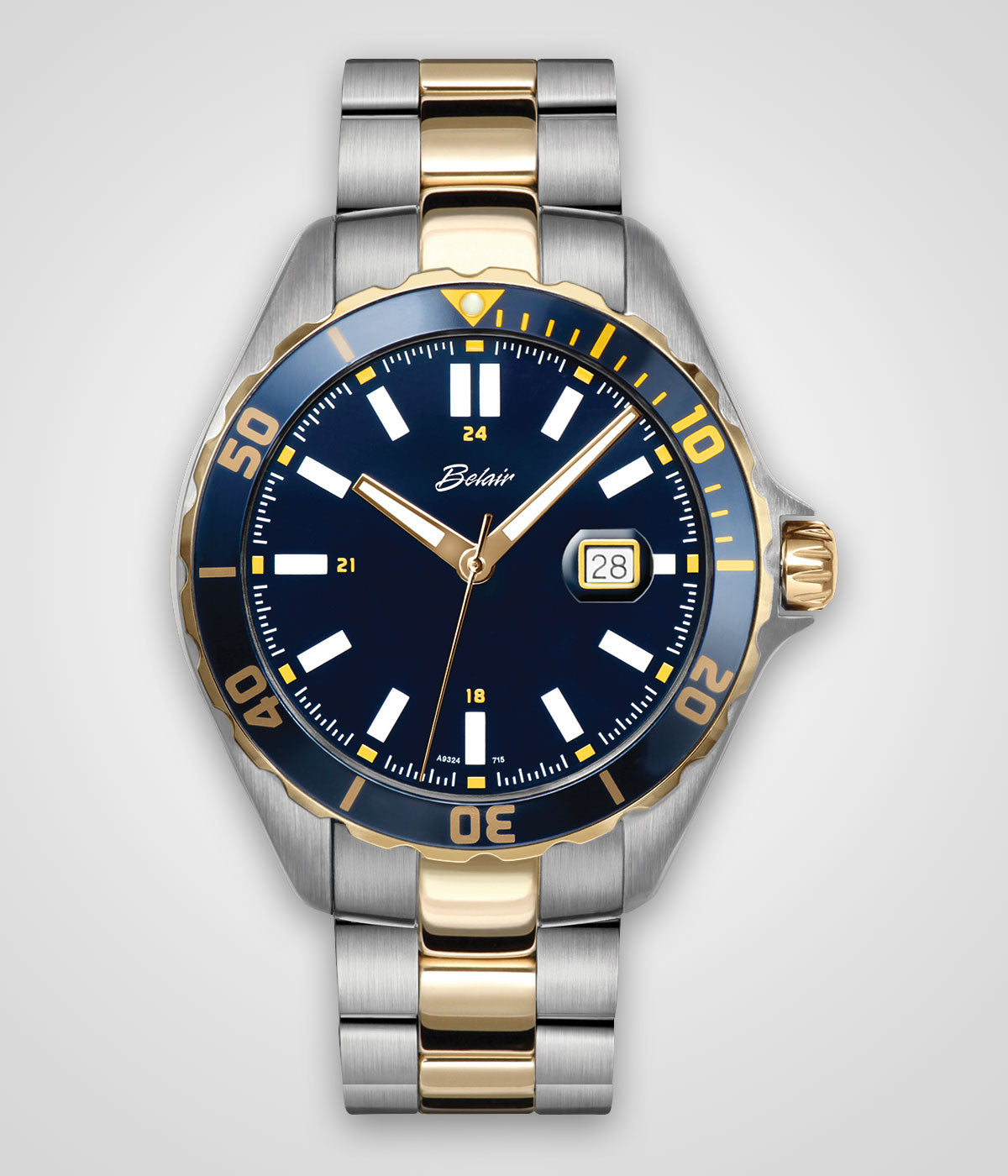 10 ATM, Stainless steel case, Stainless steel bracelet, Diver security lock buckle, One-directional rotating diver bezel, Screw down diver crown, Luminous dial and hands, Sapphire crystal with lens, Case diameter: 46.7 mm