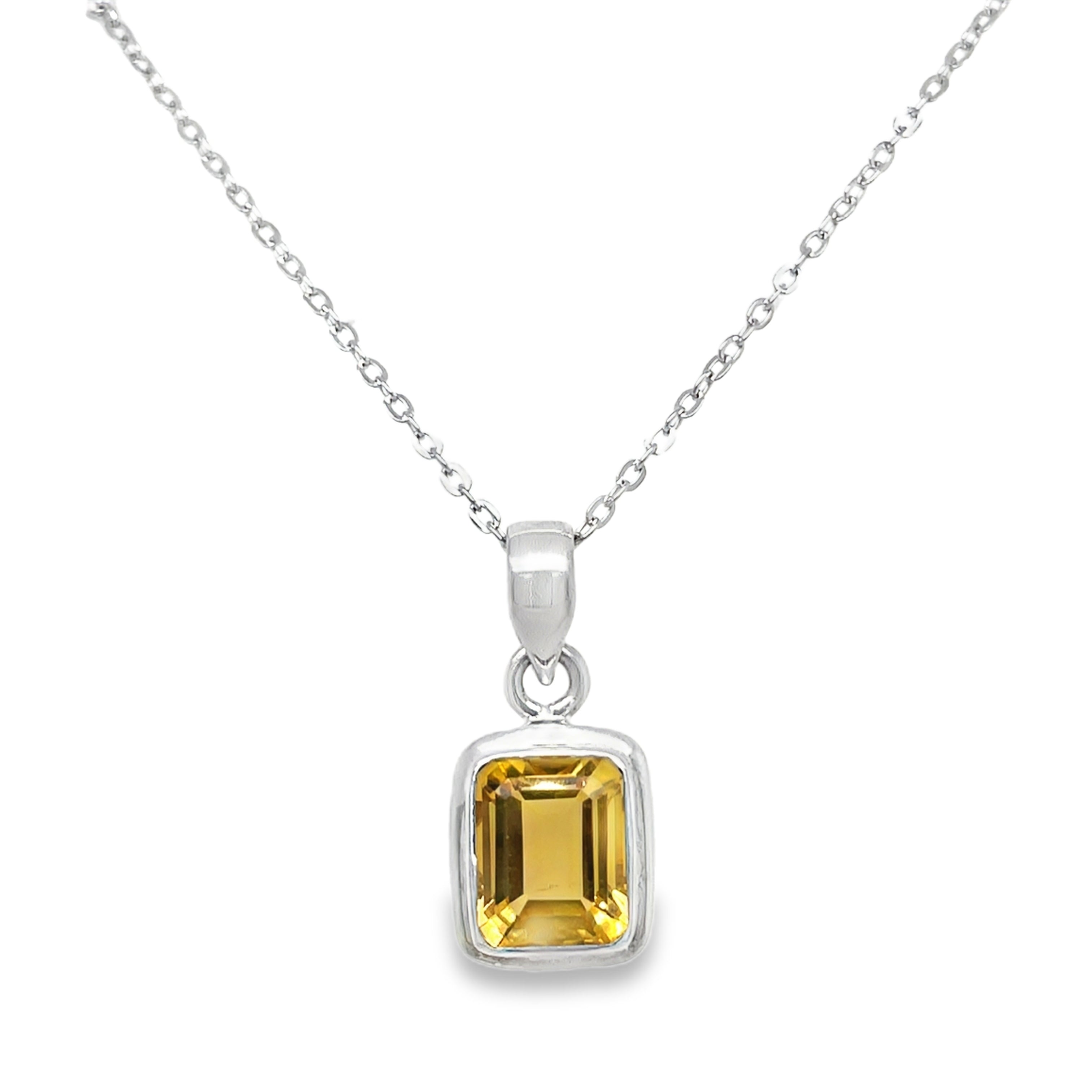 Radiant and golden, this citrine pendant glows with warmth and light. The cushion-cut gemstone captures the essence of sunshine, illuminating the skin with a soft amber brilliance. Set in sleek 925 sterling silver, the clean bezel frame enhances its vivid clarity while lending a modern, sophisticated touch. A timeless piece that balances elegance and optimism, perfect for any occasion.